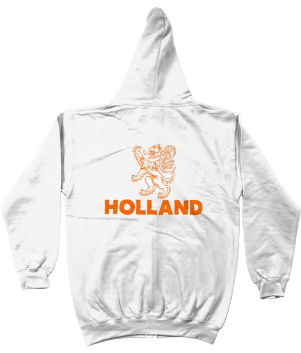 Deze Holland Zoodie combineert stijl, comfort en trots in één. Aan de voorkant vind je een subtiele, minimalistische opdruk met de iconische Hollandse leeuw en tekst HOLLAND, terwijl de achterkant voorzien is van een grote, opvallende print die jouw Oranje-trots laat stralen. Perfect voor sportevenementen, Koningsdag, festivals of casual streetwear.