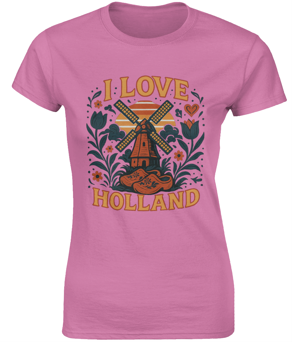 Laat jouw liefde voor Nederland stralen met dit prachtige I Love Holland T-shirt. Speciaal ontworpen voor toeristen, fans van Nederlandse cultuur en iedereen die trots is op Holland. Dit dames T-shirt combineert een stijlvol ontwerp met ultiem draagcomfort.