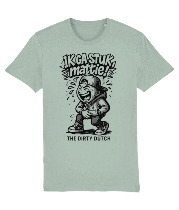 Ben jij altijd de grappenmaker van de groep? Dan is het “Ik ga Stuk Mattie” T-shirt helemaal jouw stijl! Dit streetwear shirt brengt de Nederlandse straattaal tot leven met een grappige cartoon-illustratie en de bekende uitspraak “Ik ga stuk mattie!” – ideaal voor wie niet bang is om te lachen en op te vallen.