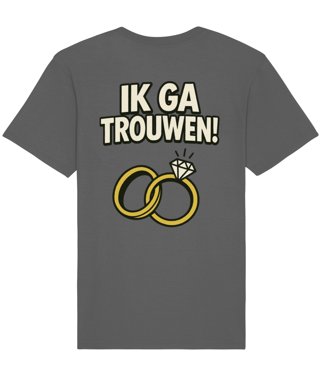 IK GA TROUWEN T-shirt – Unisex Verlovingsshirt van 100% Biologisch Katoen