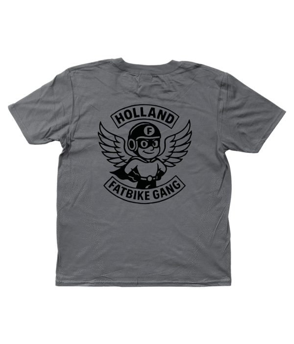 Perfect voor stoere kids die houden van buitenspelen, fietsen en een vette streetwear look. Met dit shirt laat jouw kind zien dat hij of zij onderdeel is van de Holland Fatbike Gang.