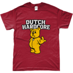 Laat je liefde voor de Dutch Hardcore scene zien met dit opvallende T-shirt. Het shirt heeft een krachtige print van een stoere gele beer met een uitdagende blik, gecombineerd met de bold tekst DUTCH HARDCORE. Perfect voor hardcore liefhebbers, gabbers, festivalgangers en iedereen die een edgy streetwear look wil uitstralen.